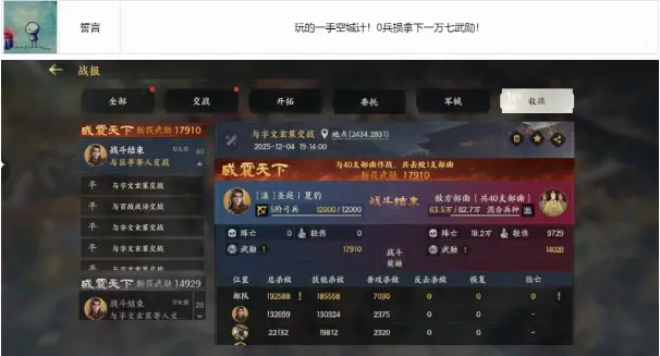 九妹点评:0兵损爽吃武勋,这手空城计太秀啦!