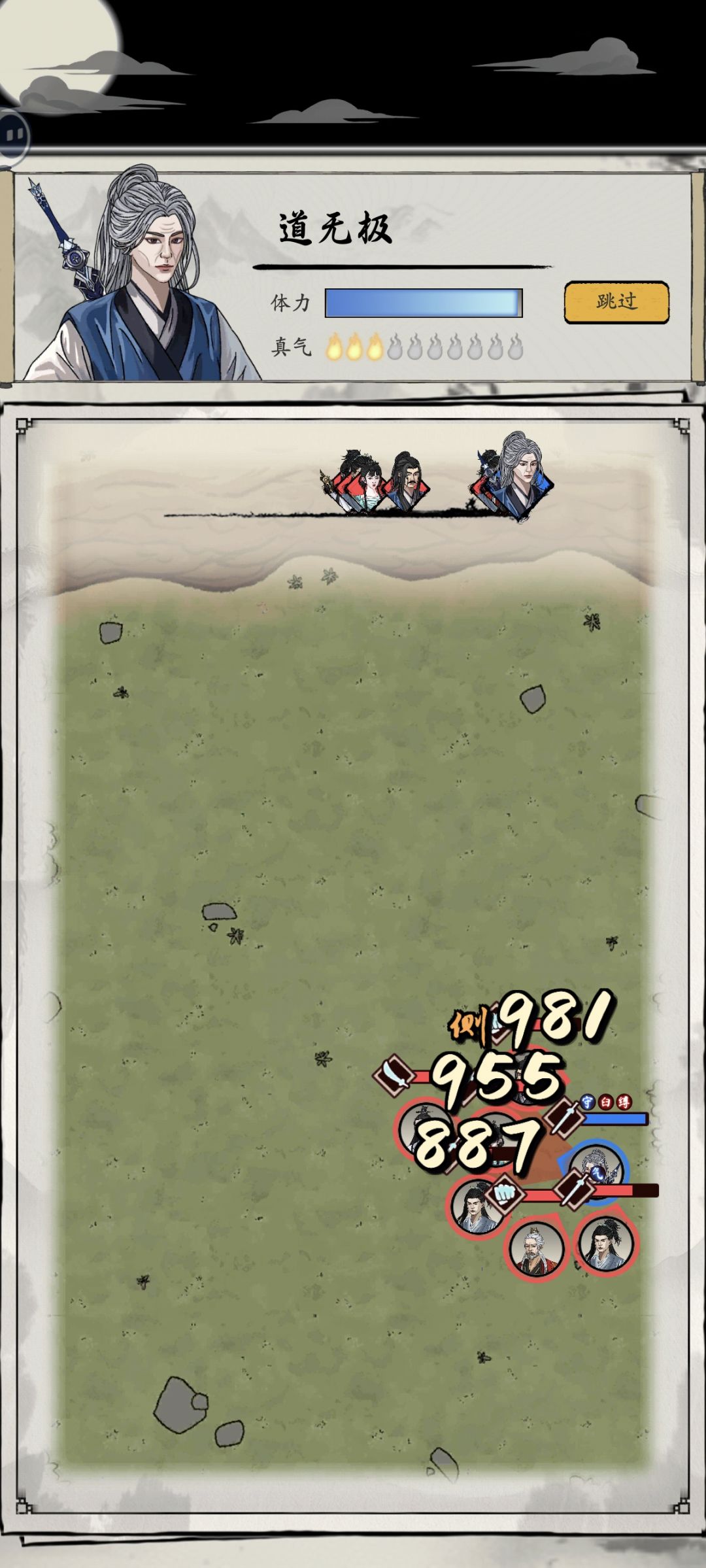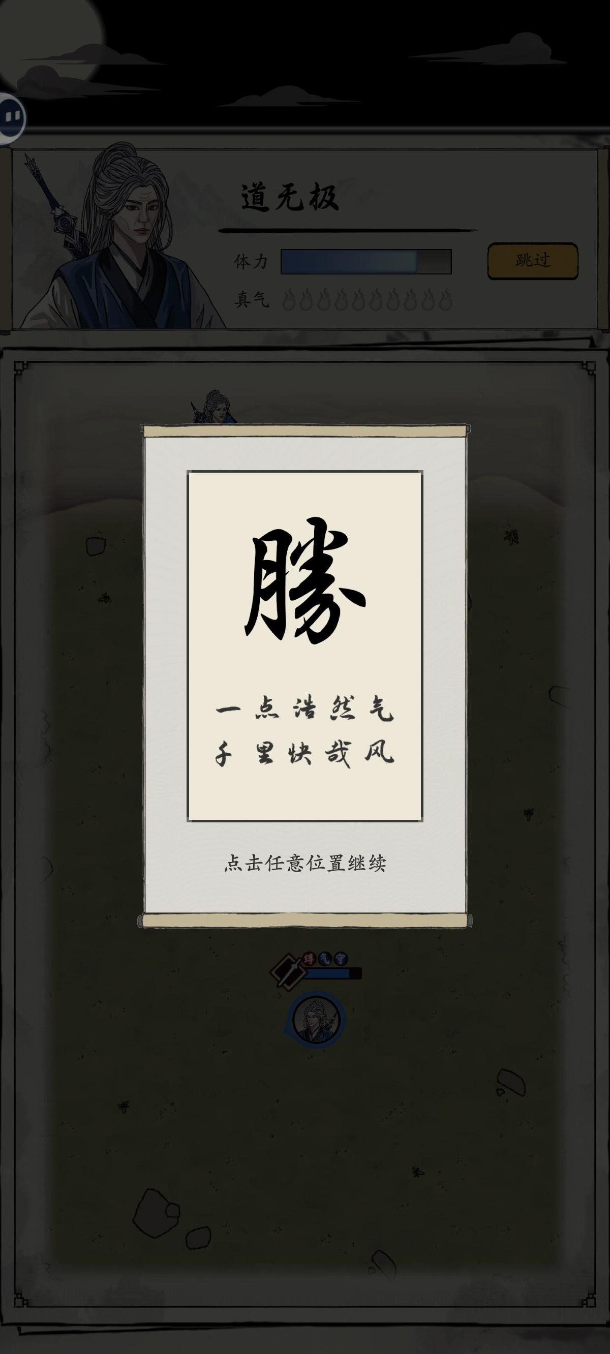再搭配坚守剑(都不需要等到自创剑法),以及《离尘神功》的被动效果,1V7的情况下可以做到1回合放一次大招,运气不好也能两回合放一次大招。全程保持“坚守”“聚气”的效果。直观体验就是电脑打你掉血不超过200且绝大部分情况下都只掉1血,然后咱自己一回合一个大回1400+的血打的没回的多根本不掉血。