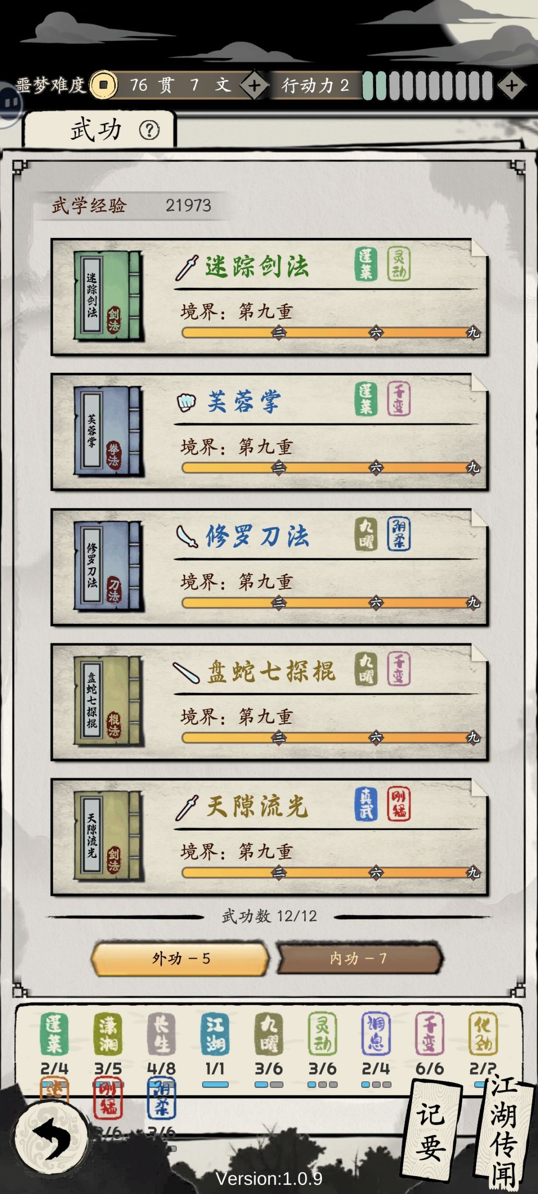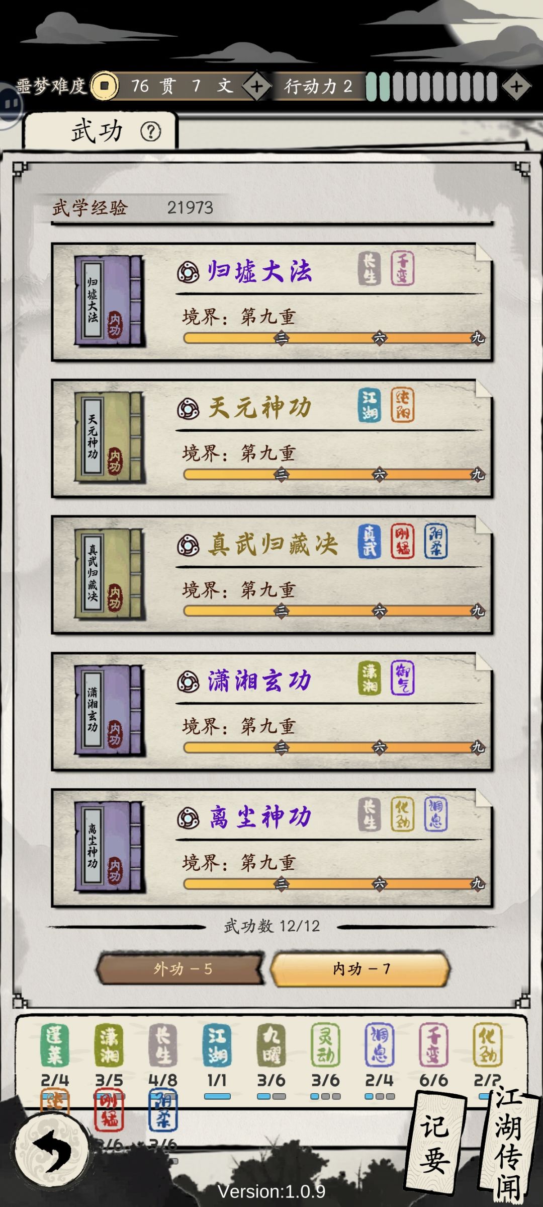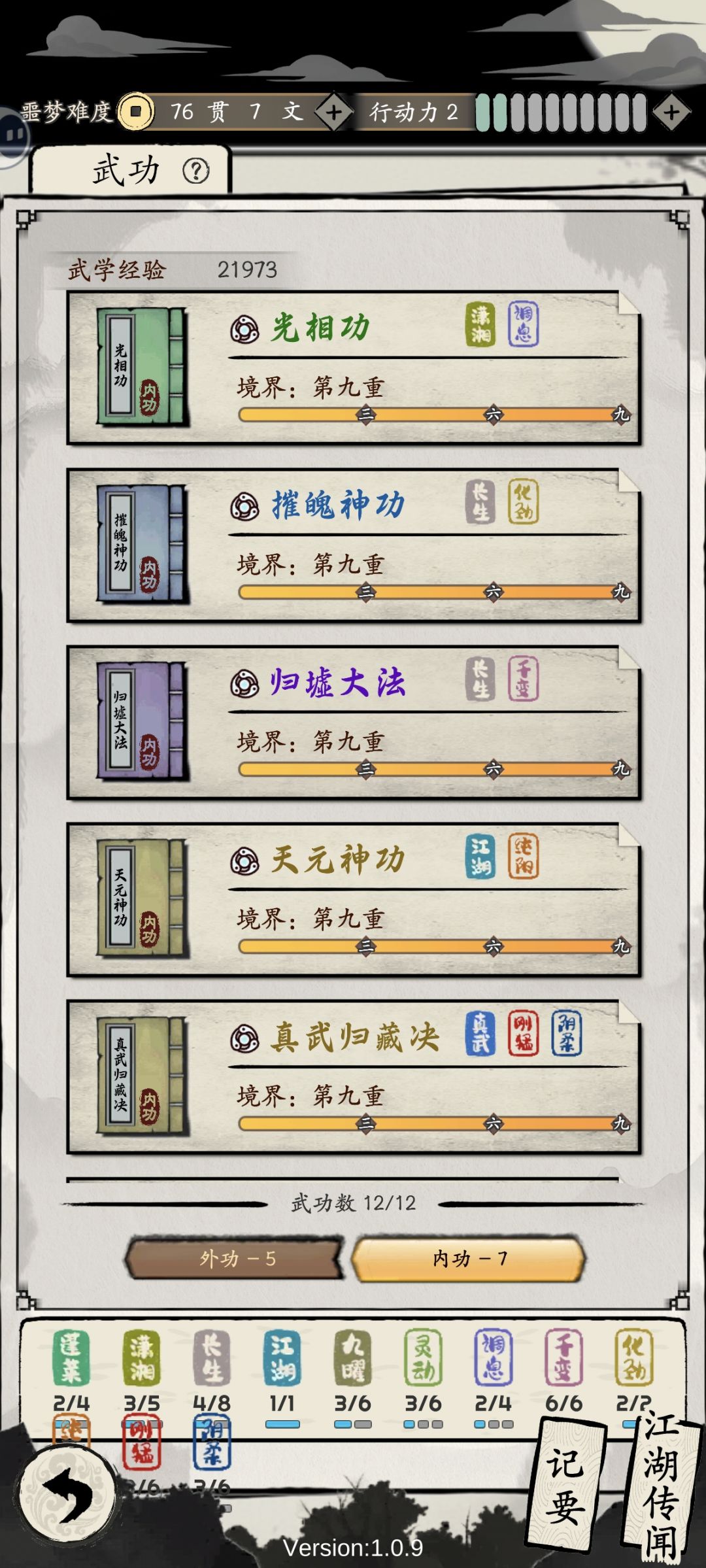 效果:同时兼备刚猛和阴柔两种风格时,行动结束时40%获得“聚气3”(聚气3的效果是,真气增加速度+30%)