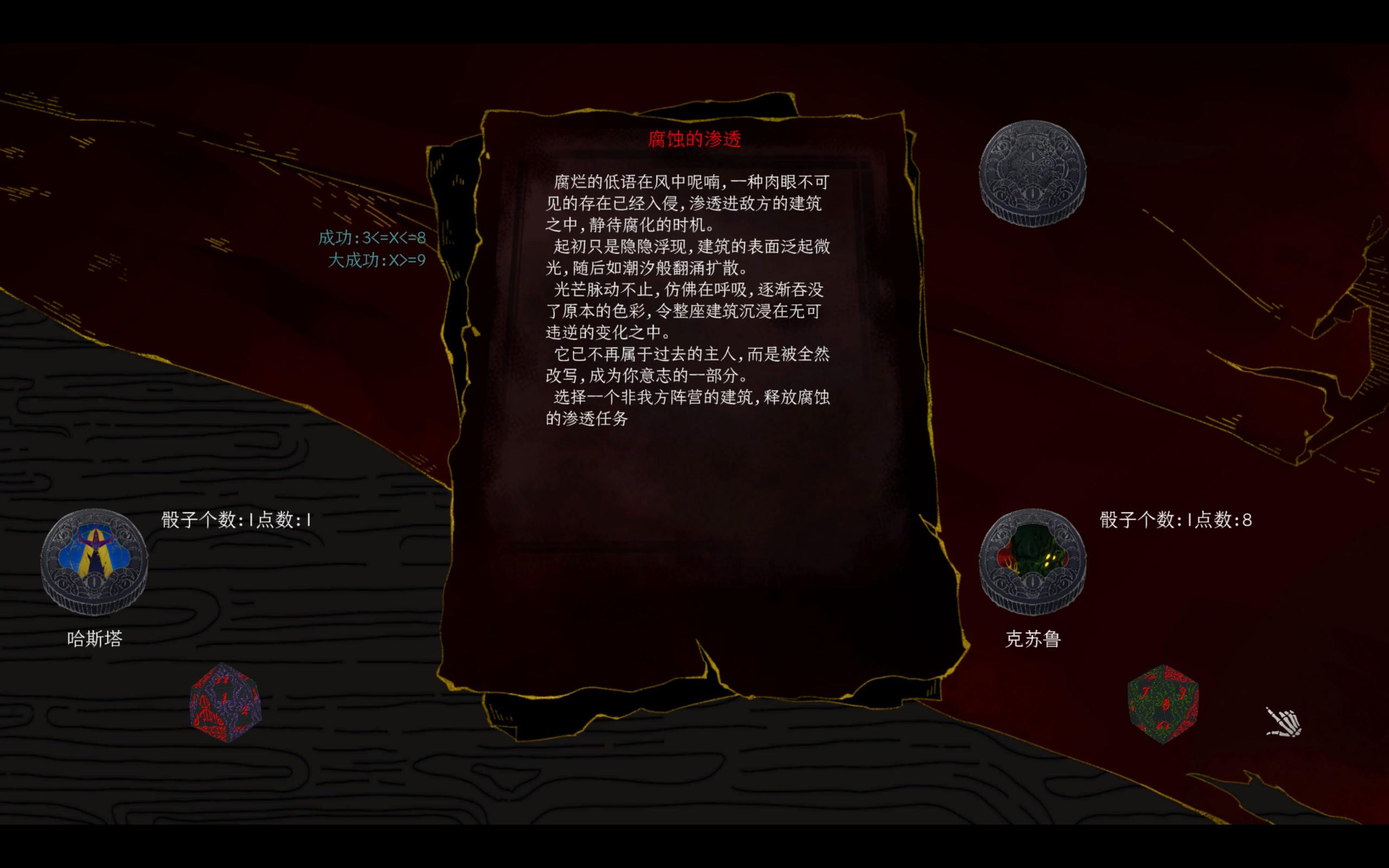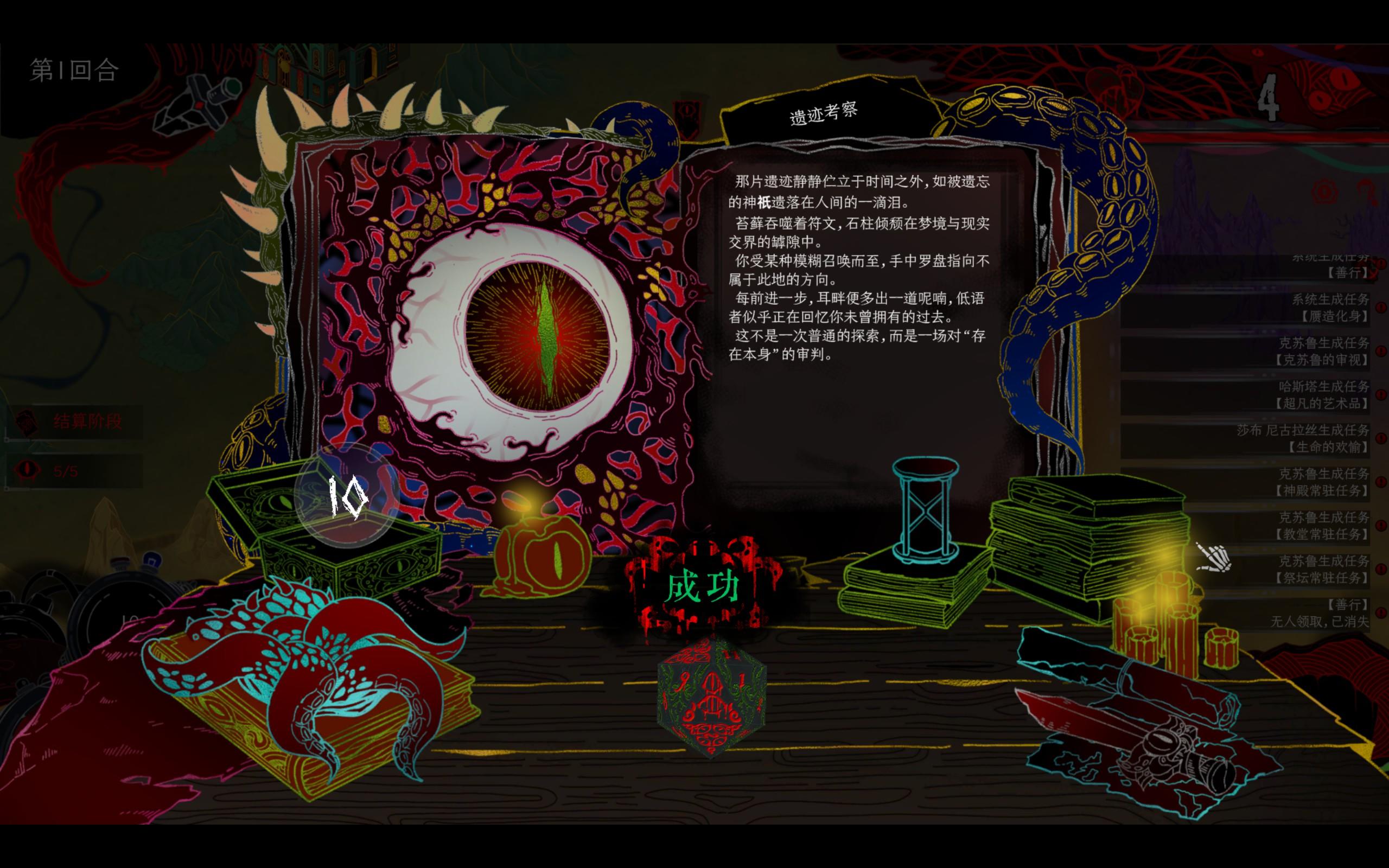 总结游戏整体的玩法来说就是每回合有限资源的一个整合规划,然后对于运气掷骰子点数的判定等等,以及各种克系旧神的故事设计....但是这款《神启的呐喊》在这方面的设计还是相当不错,所以游戏目前在Steam上面还是特别好评诶嘿。