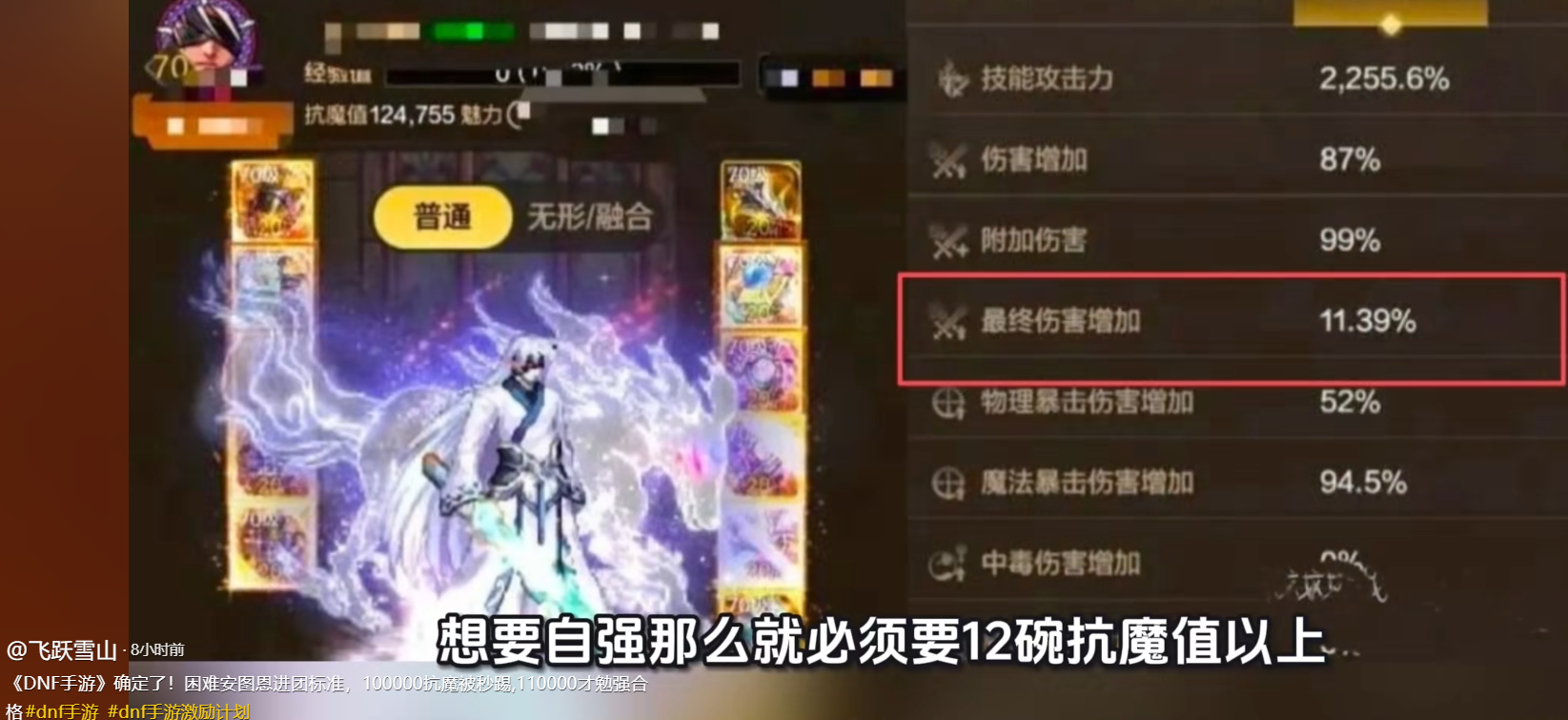 首先这个抗魔门槛就是编撰出来的,再者12万抗魔在当前版本没有增幅11的非本命甲打造很难达成,希望大家理智一些,切勿被骗