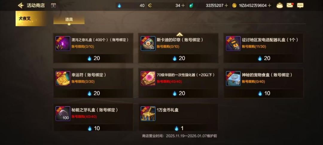 假设玩家当作主号,且会进行一定程度的氪金,第一优选兑换材料是“秘能之牙礼盒”,全部换完,之后再把混沌之息和封印石之类兑换完毕,最后再去考虑门票和强化器