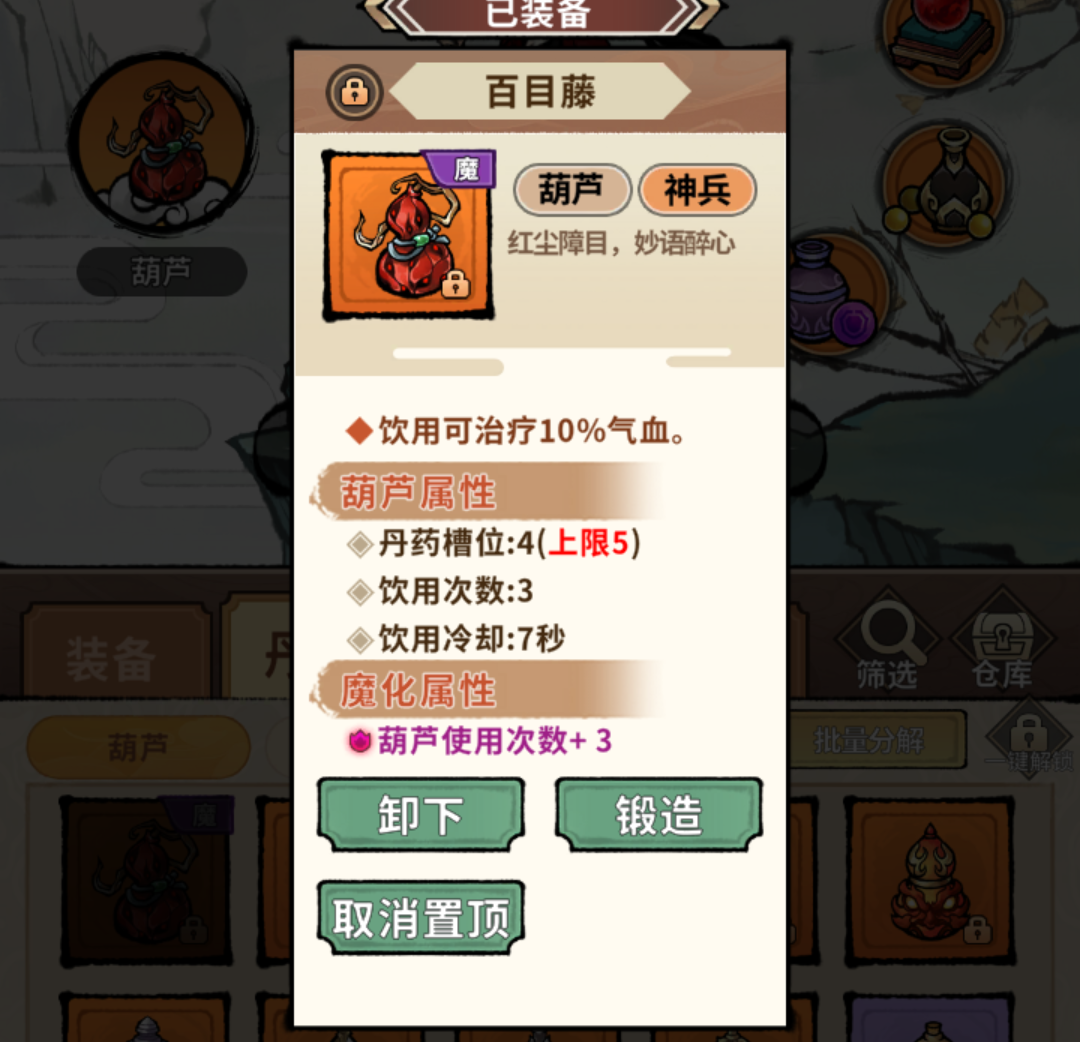 葫芦用百目魔化加三次数,加一丹药都可以。