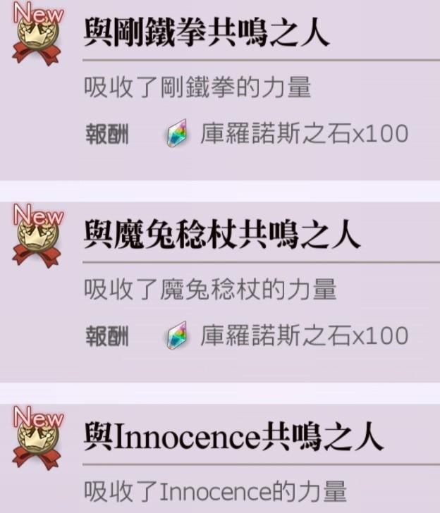 武器架給的鑽石:相遇50、深究100、共鳴100