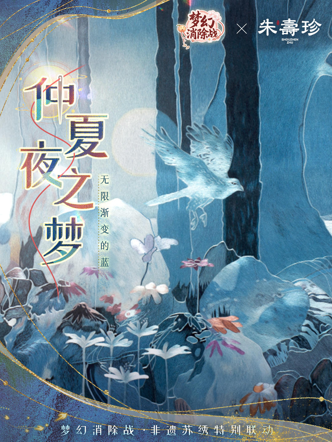 🍀 尤为精妙的是,朱老师以逾两百种深浅各异的蓝色丝线,绣出了夜色由暮至深的流转。