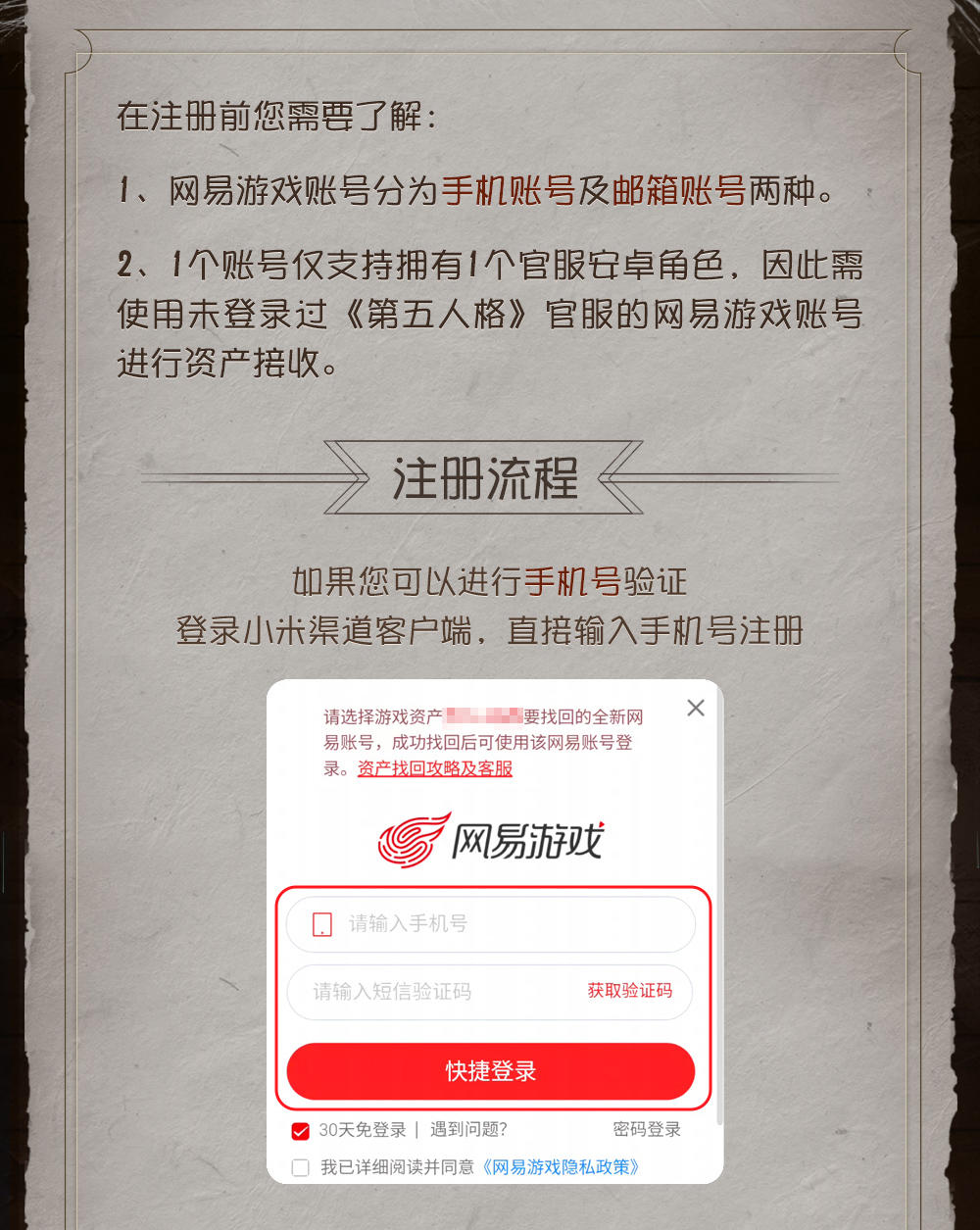 亲爱的访客: 感谢您一直以来给予《第五人格》小米渠道版本手机游戏的支持与厚爱!《第五人格》小米渠道版本手机游戏将于2025年12月29日10 时停止游戏充值及新用户注册,并同时开启小米角色资产找回服务,现将相关事项通知如下: 1、2025年12月29日10时:关闭游戏在小米平台的下载入口,玩家将无法下载游戏,同时停止游戏充值、新用户注册,并同步开启角色资产找回服务,请跟随官方指引进行资产找回,继续您的游戏体验; 2、2026年3月2日15时:正式停止游戏在小米平台的运营,玩家将无法通过小米端口登录游戏及相关服务。 感谢一直以来支持《第五人格》小米渠道版本手机游戏的广大玩家,自本公告发布之日起至2026年3月2日15时,现有玩家在小米渠道游戏账号中尚未消耗的游戏资源仍可继续使用。以上所述,还请您周知并相互转告,如有任何疑义,请随时与游戏客服联系。 当前使用小米渠道版本登录《第五人格》的访客,可查看相关操作指引找回资产: P1-5:小米资产找回操作指引 P6-9:常见问题Q&A P10-13:网易账号注册指引 我们十分感谢您的理解和支持,也衷心期待您在《第五人格》继续一段美好的旅程! 《第五人格》官方运营团队 2025年12月29日 #第五人格 #第五人格小米渠道资产找回