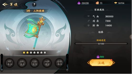 1.消耗兵魂可为军旗注魂,进度满后可升星,达到对应阶数可以激活军旗技。