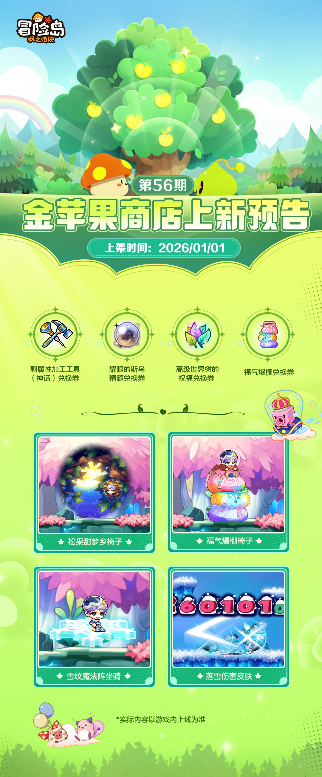 1月1日,欢迎冒险家前往金苹果商店抽取心仪道具,2026福气开道!