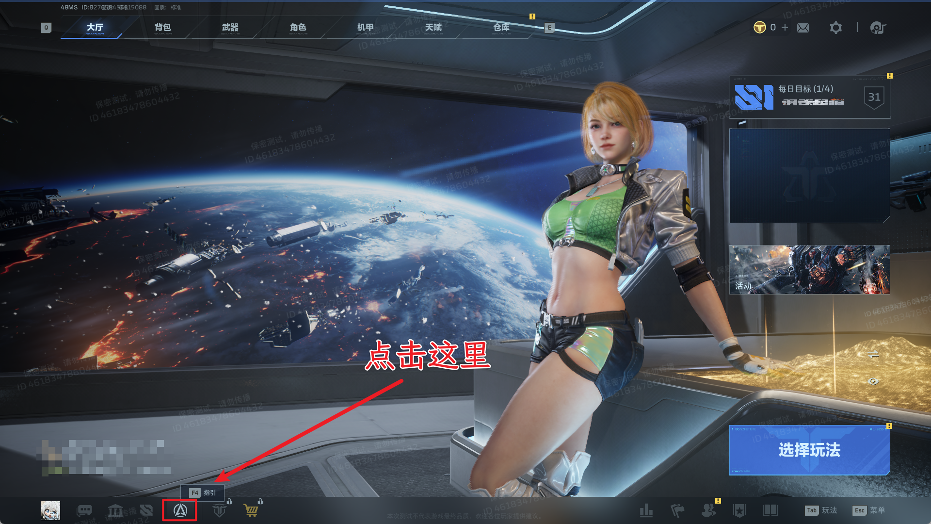 逆行者们在注册完信息并进入游戏后,将进入短暂的新手教程阶段,在完成新手教程的引导后,可以通过大厅下方的“指引”,快捷键为“F4”,了解关于《逆战:未来》的最基础机制。