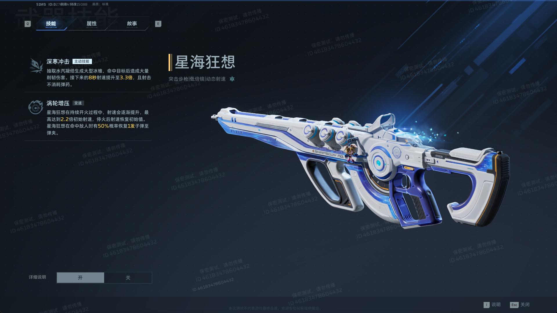 这些技能带有独特的效果,在关键时刻开启能够给予一定的帮助,对应的技能效果可以在武器→详情了解;以下图的星海狂想举例。