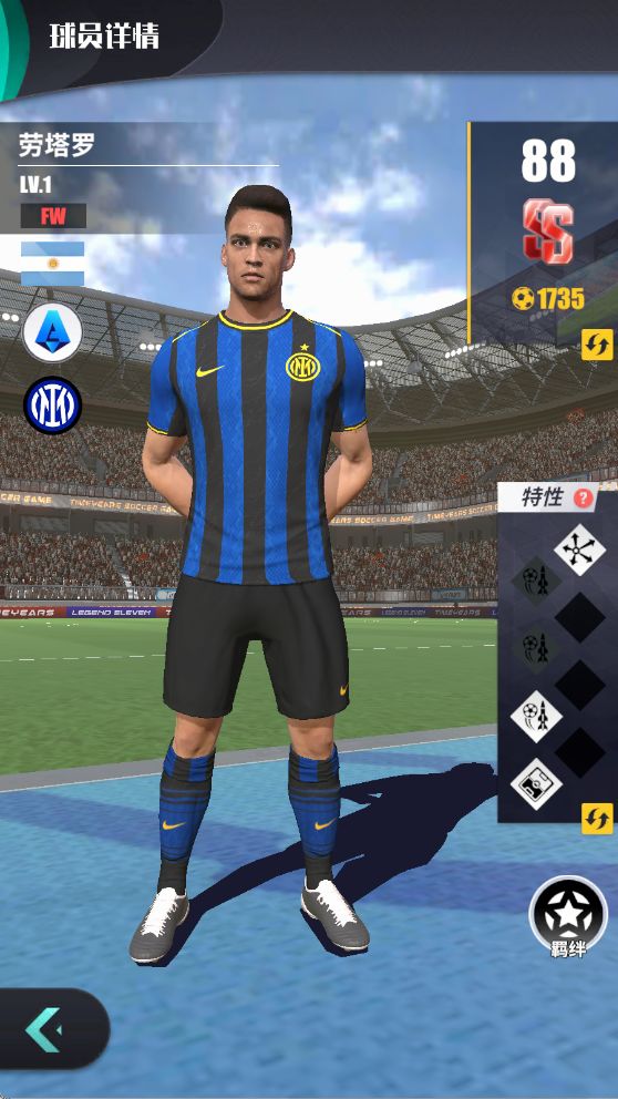 下面给玩家带来几个游戏中国际米兰球员的球员简单介绍:首先是劳塔罗。在游戏中评分为88分,其球员特性包括:精准制导,黄金开局,鬼魅切位等特性。精准制导是指球员擅长通过预判守门员重心与球门死角分布,在射门前完成轨迹校准,如同导弹锁定目标般精准打击,使射门成功率提高1%。黄金开局是指球员擅长在比赛开始时快速进入状态,使用闪电战策略迫使对方防线提前暴露出缺口。前30分钟内,射门与凌空属性提高3%。