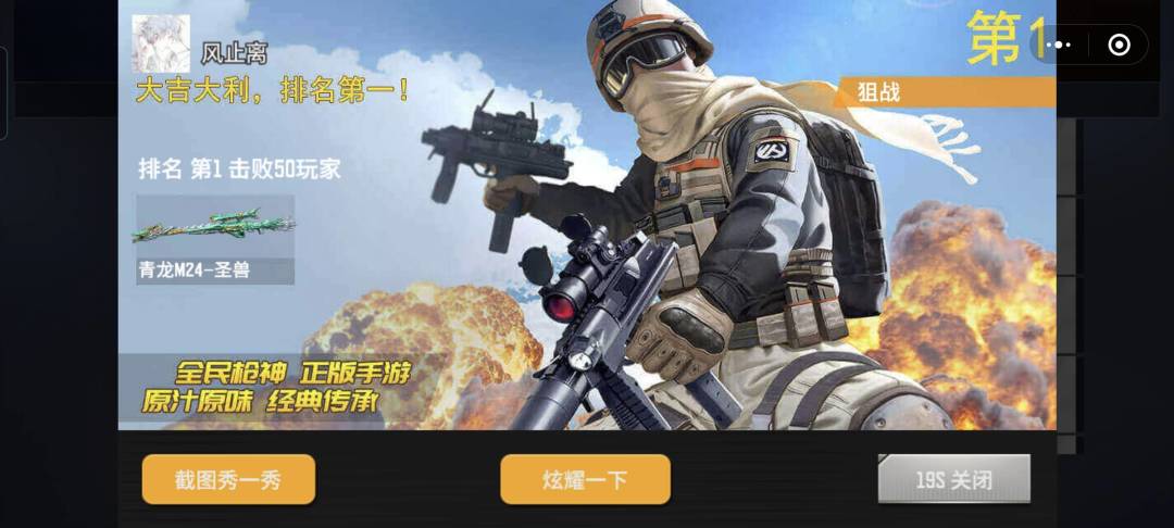 可以看到,青龙神狙在高团的表现依旧很亮眼。追溯到去年夏天那场甩狙大作战,我使用着青龙神狙拿下了第一轮的Top1,那时候我就知道青龙神狙不会陨落,还有我在狙战中使用它拿下的50杀,依旧历历在目。