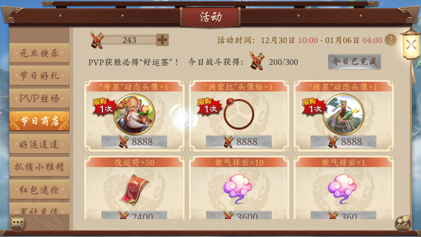 玩家可以消耗“好运签”兑换各种游戏道具!