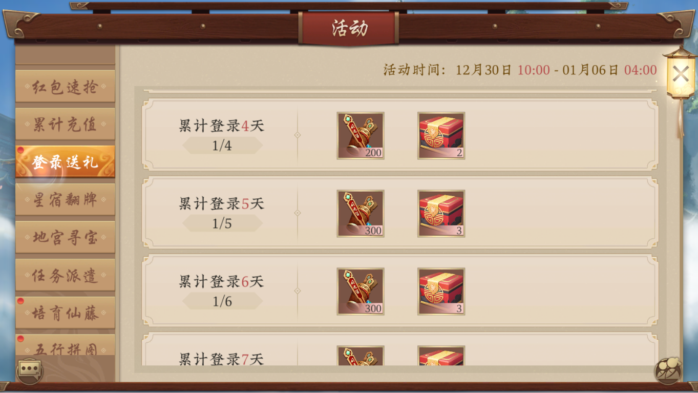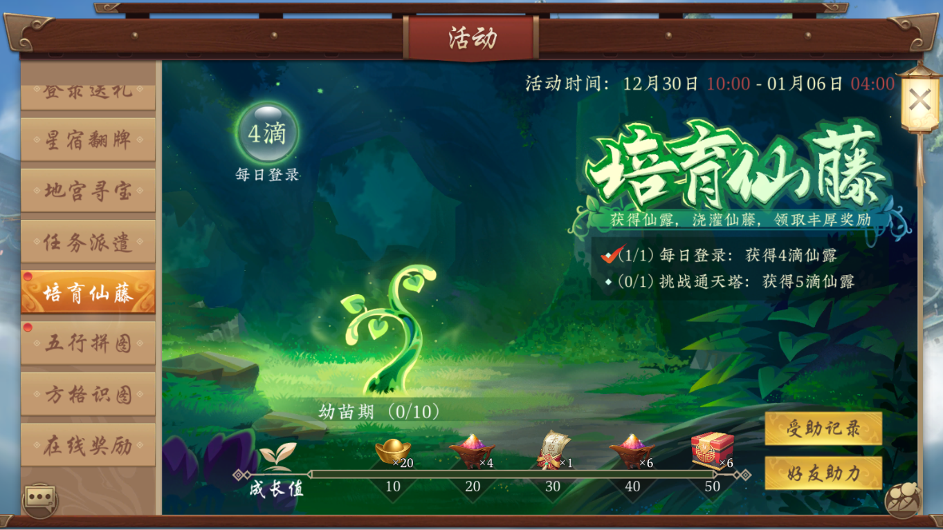活动期间,玩家每日完成任务可为仙藤浇灌仙露,增加成长值。
