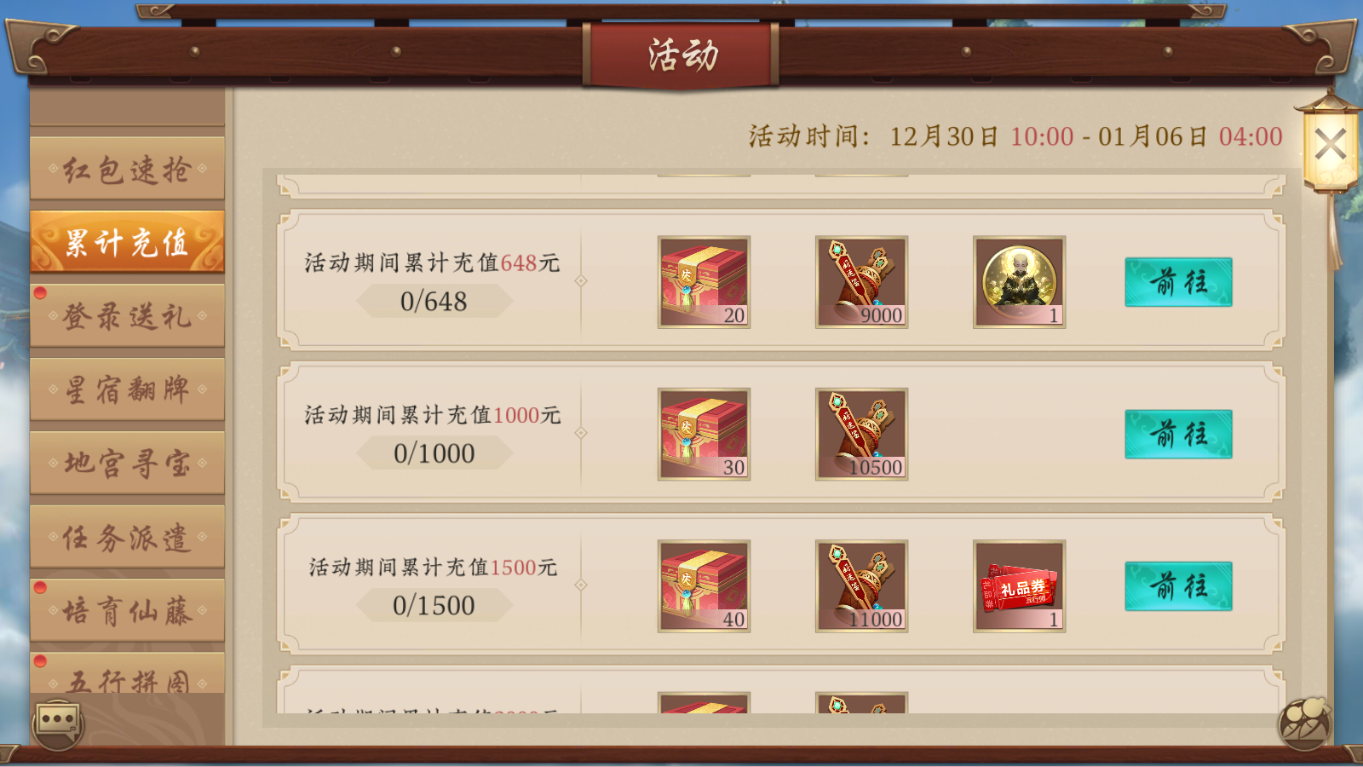 活动期间,累计充值达到一定数额即可领取额外奖励!