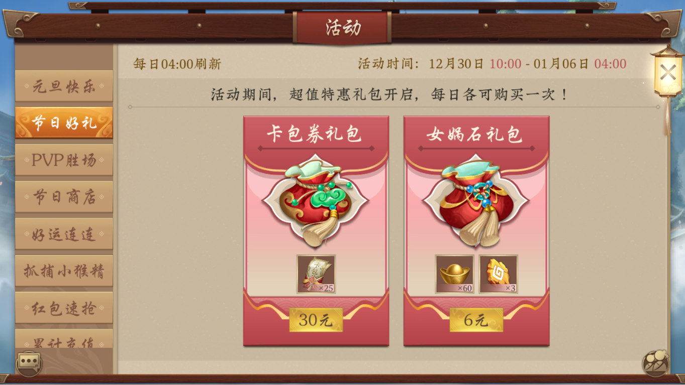 活动期间,超值特惠礼包限时开启,每日都可购买一次!