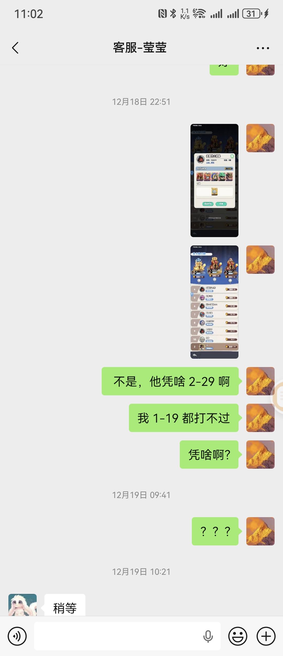 本人玩手游向来只充值不写评,今天实在忍无可忍才来吐槽。开服至今我始终稳居榜单前列,每日持续充值,战力数值常年断层第一,却全程被科技外挂碾压,始终拿不到真正的榜首,体验极差。多次联系客服反馈,得到的永远是机器人式回复“有消息会联系你”,毫无实质回应。