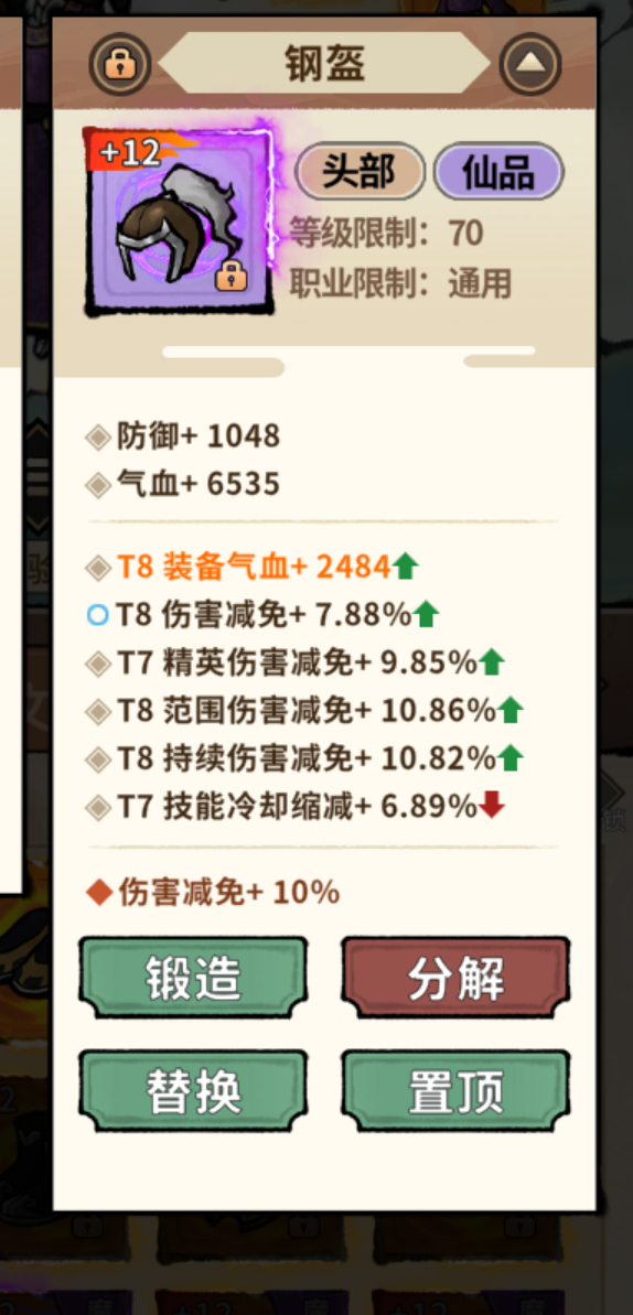 词条 装备气血t7-t8(70紫t8最优) 伤害减免 精英伤害减免 范围伤害减免 物理伤害减免 技能冷却。