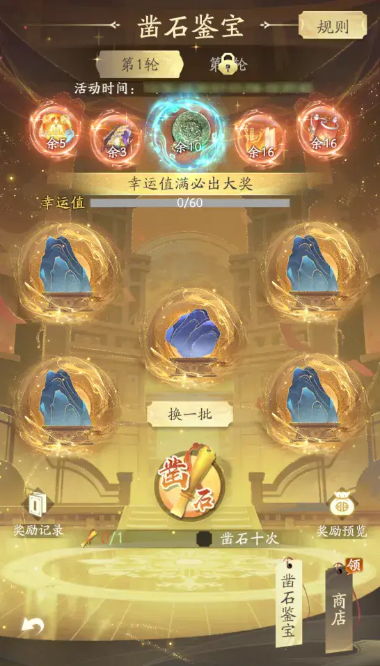 每轮的首次鉴宝免费,请记得前往商店领取免费的凿石神鉴哦~