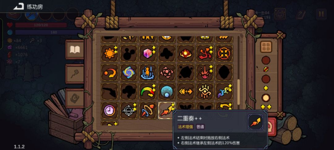 二重奏的效果很简单,在二重奏左边的法术结束后,会释放右边的法术,并且以此法释放的法术,会继承左边法术的30%/60%/120%的伤害,这个机制非常简单,左边放例如陨石,诡雷,闪耀星矢(大力推荐闪耀星矢),右边放蝴蝶,彩虹,闪电急行这种高频率法术就能打出很高的伤害