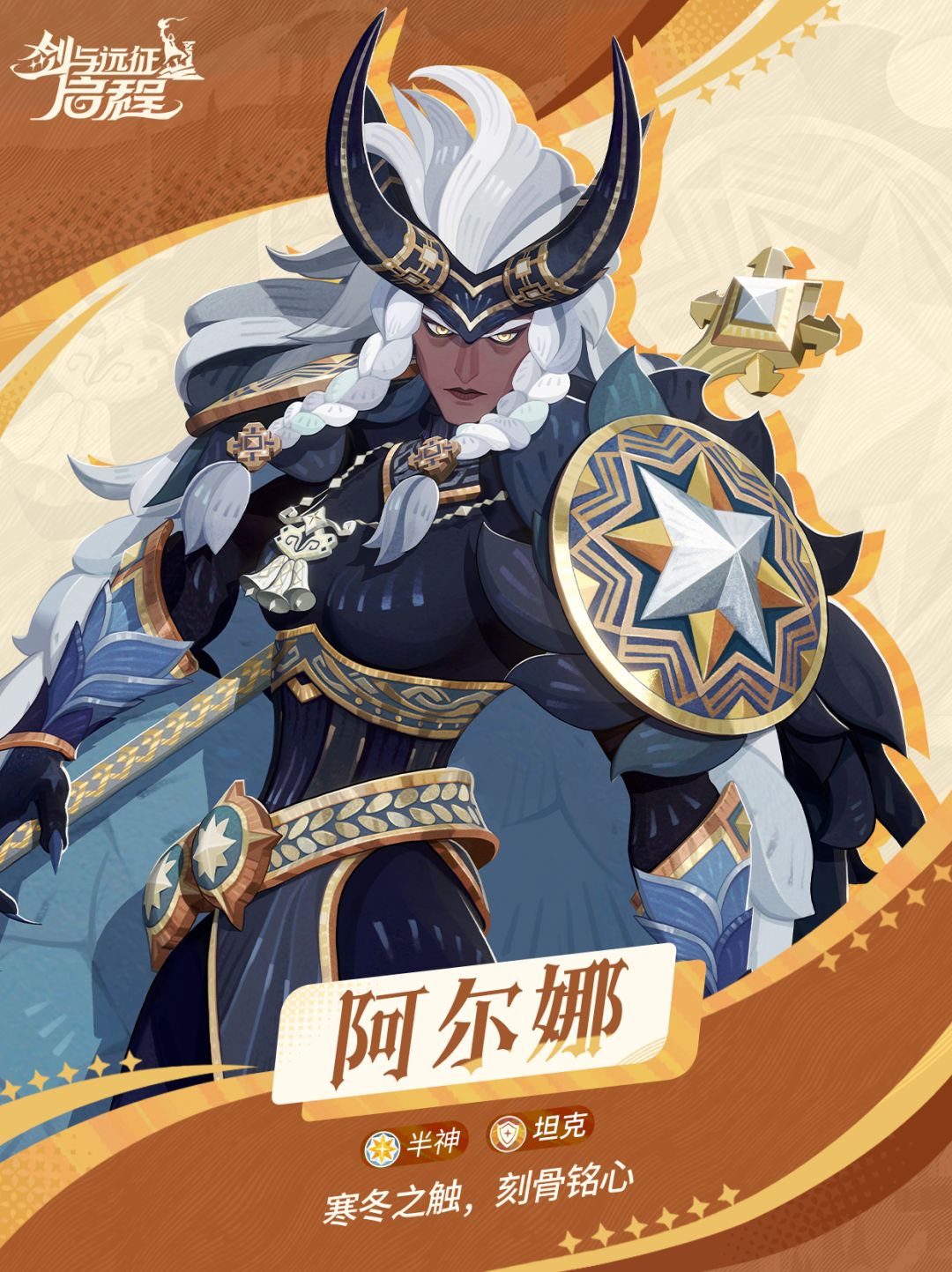 阿尔娜,是一位出生于极北之地、拥有强大气魄的凛冬战士。她虽外表冷酷,看上不去不近人情,实际上是一位嫉恶如仇,内心炽热如火的半神。