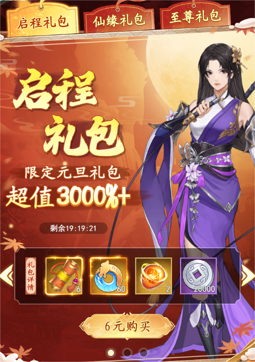 启程礼包、仙缘礼包、至尊礼包——豪华道具恭贺新年!