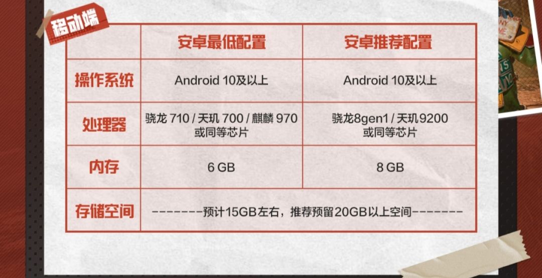 - 最低:Android 10+,骁龙865/天玑9000/麒麟9000同级,内存≥6GB,预留≥10GB存储