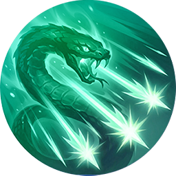 对敌方后排造成攻击力148%的法术伤害,对目标添加1层【涂毒】,并有35%概率对目标添加【同命归缚】,若目标已拥有【同命归缚】,则额外添加1层【涂毒】。