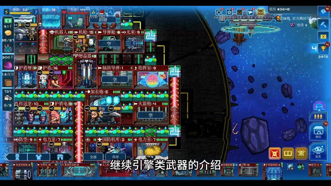 本期主要介绍的引擎类武器房间有:火箭炮、导弹舱、辅助导弹和鱼雷发射器。