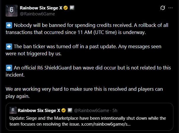 12月27日,黑客攻击育碧服务器,向《彩虹六号:围攻》的每位在线玩家账户注入21亿点券❗❗❗