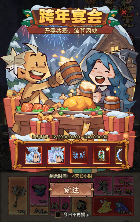 (2) 跨年宴会持续6天,可以参与佳节礼盒、盛宴邀请、佳节好礼等活动。