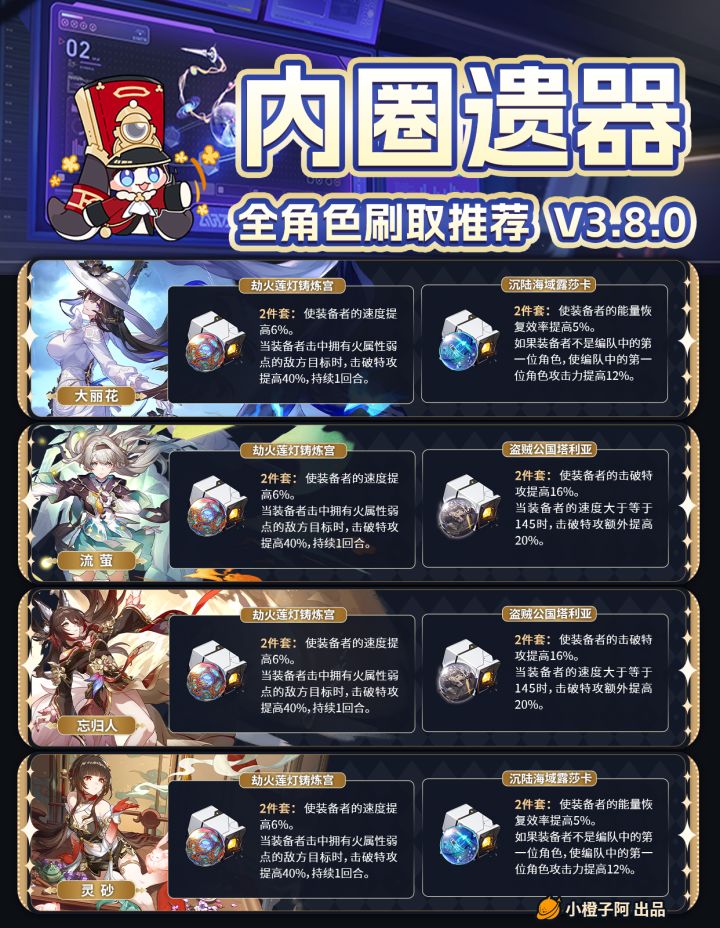 趁着「位面分裂」双倍刷取活动开启,橙子整理了一份内圈遗器刷取攻略,大家可以看看自己想养成的角色刷取什么遗器~