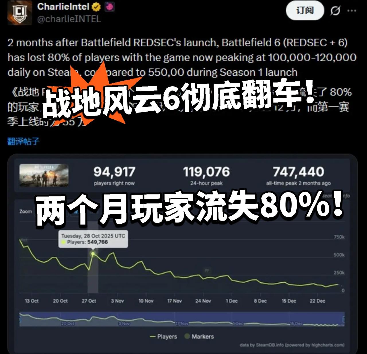 战地6暴雷翻车!两个月玩家流失超80%!