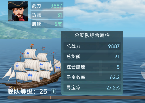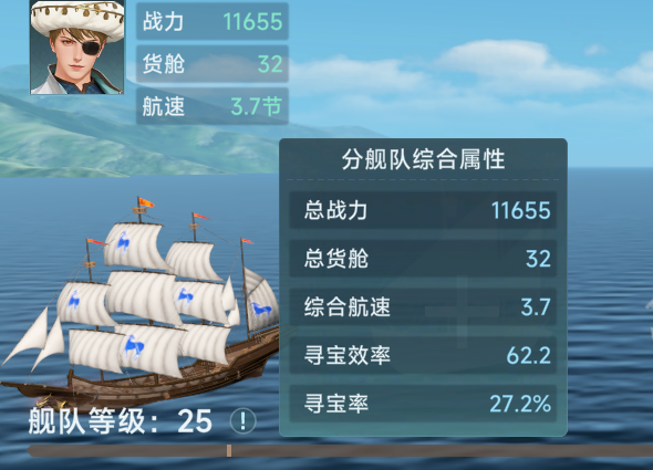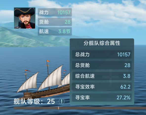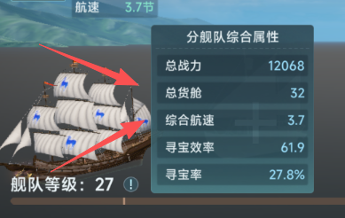 可见寻宝率,寻宝效率,总战力,总货舱,综合航速都发生变化。