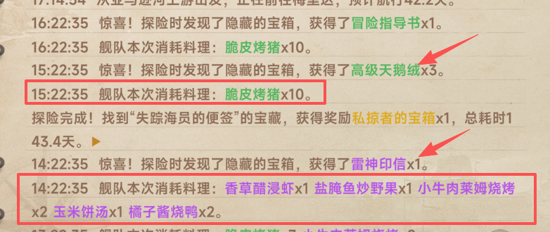 无论跑商还是挖宝,分舰队都要“吃饭”——也就是消耗料理。