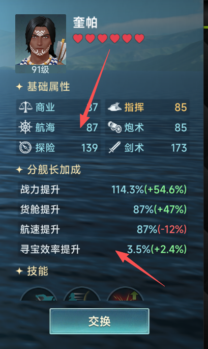 如图,猫猫换了探险数值较高的航海士,那么寻宝效率就改变了!