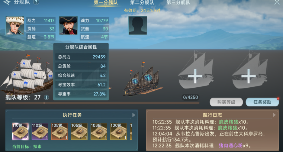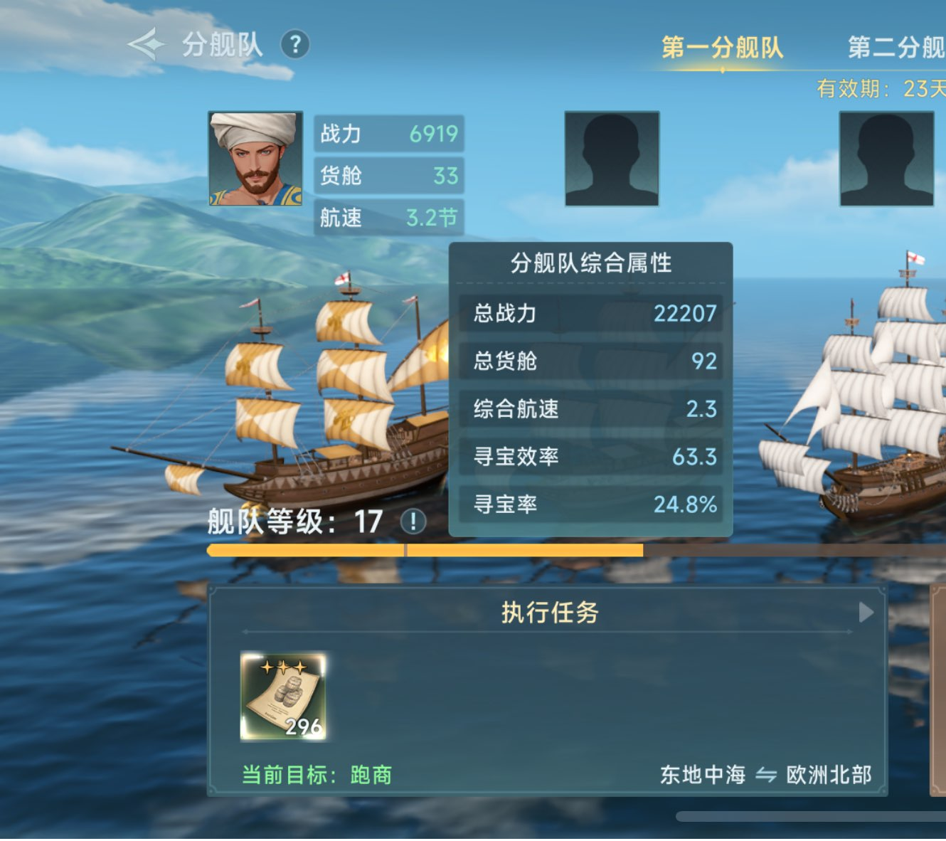 总结:分舰队可以跑商也可以发现藏宝图,猫猫的建议是分舰队初期还是发现藏宝图为主,因为这可以节省我们体力(体力可以做别的事情)。等分舰队等级提升,综合航速及货舱大了以后跑商的性价比更好!