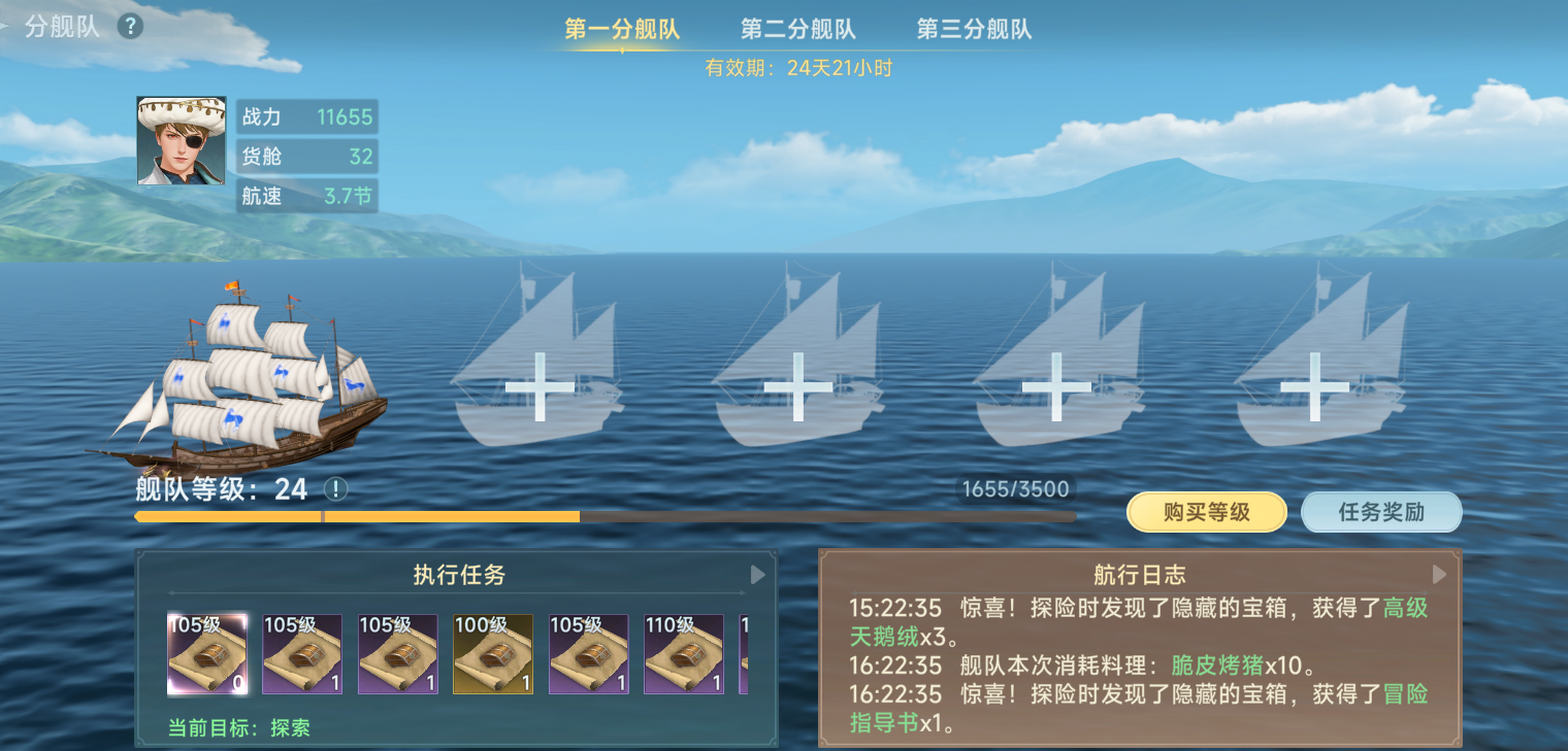 分舰队等级是所有指标中核心,分舰队每天做跑商或者发现藏宝图都会自然提升等级!一天升级多少跟分舰队执行的任务时间相关,执行任务时间越久提升经验越多!