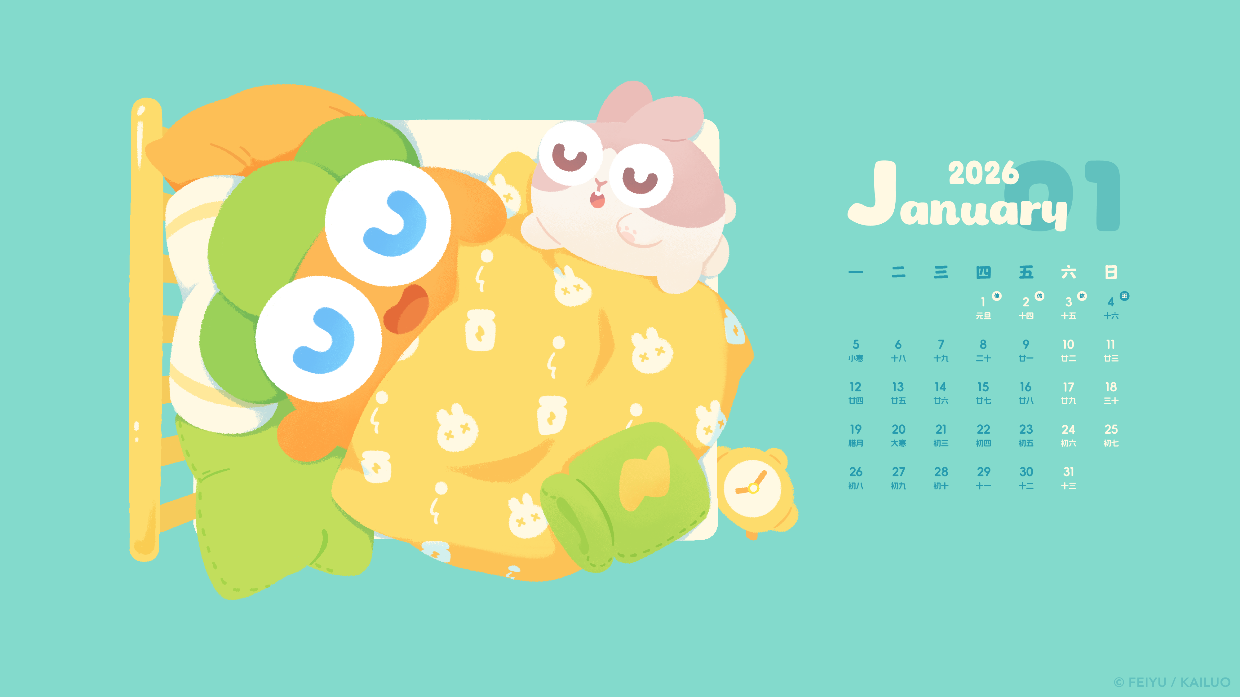 1月壁纸丨新的一年吃好睡好,没烦恼~
