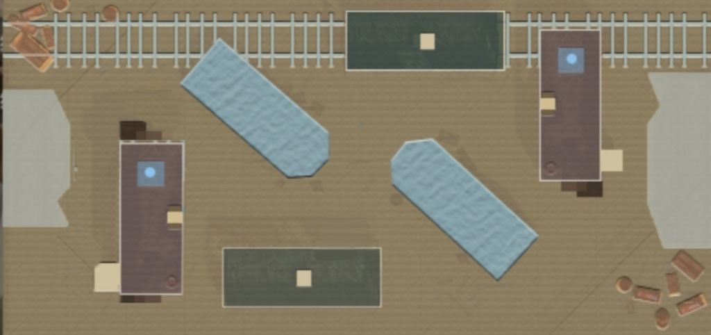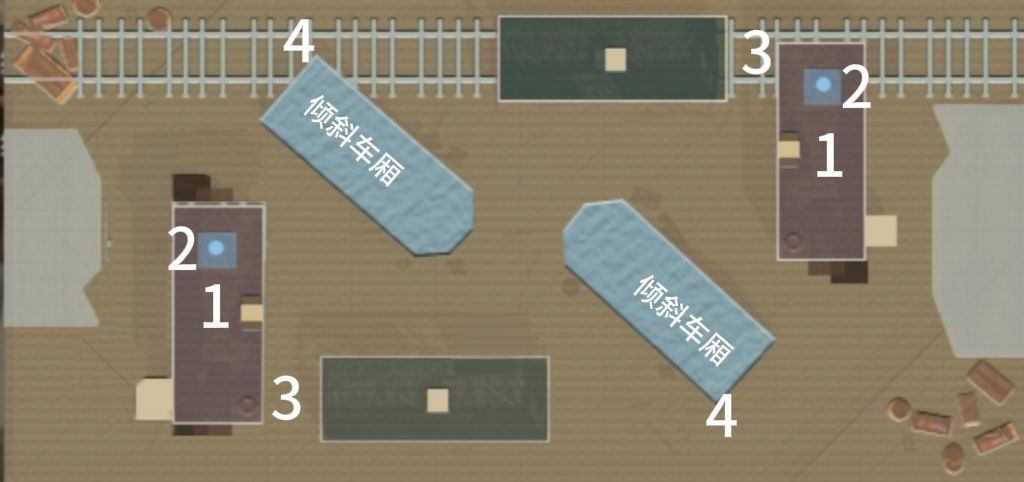 烈日车冢这张地图经常打狙战的朋友应该比较熟悉,它和狙战地图的区别就在于增添了所有车厢的内部构造。整张图的面积并不大,因此地形也相较而言很简单。