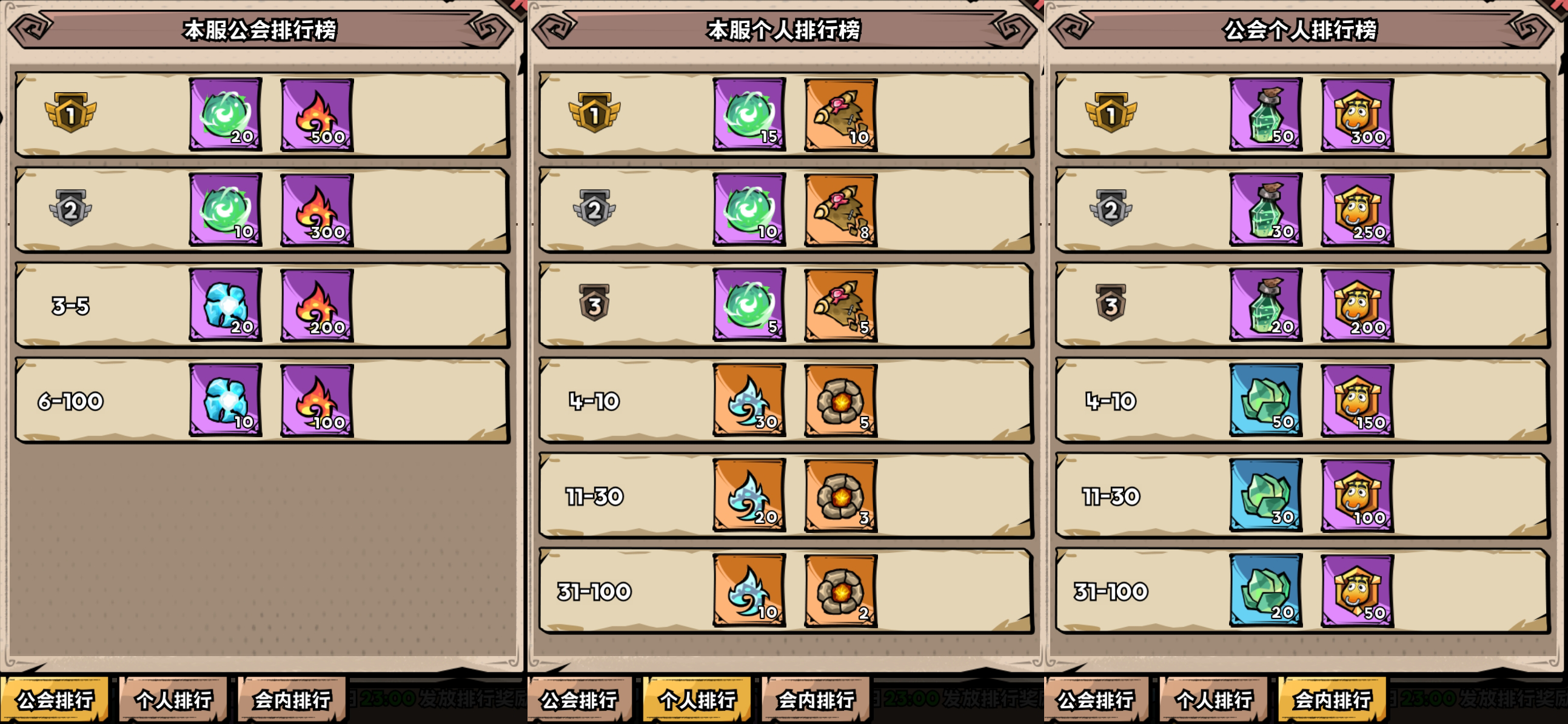 排行榜共分三个榜单且奖励拉满,每日23:00准时发放,英雄们记得多多争取上榜哇。