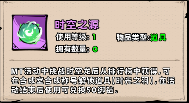 同时排行上榜奖励包含“时空之源”道具,英雄可用其在合成室合成对应称号解锁道具「时光之羽」,从而解锁超稀有称号「追忆湮灭者」!