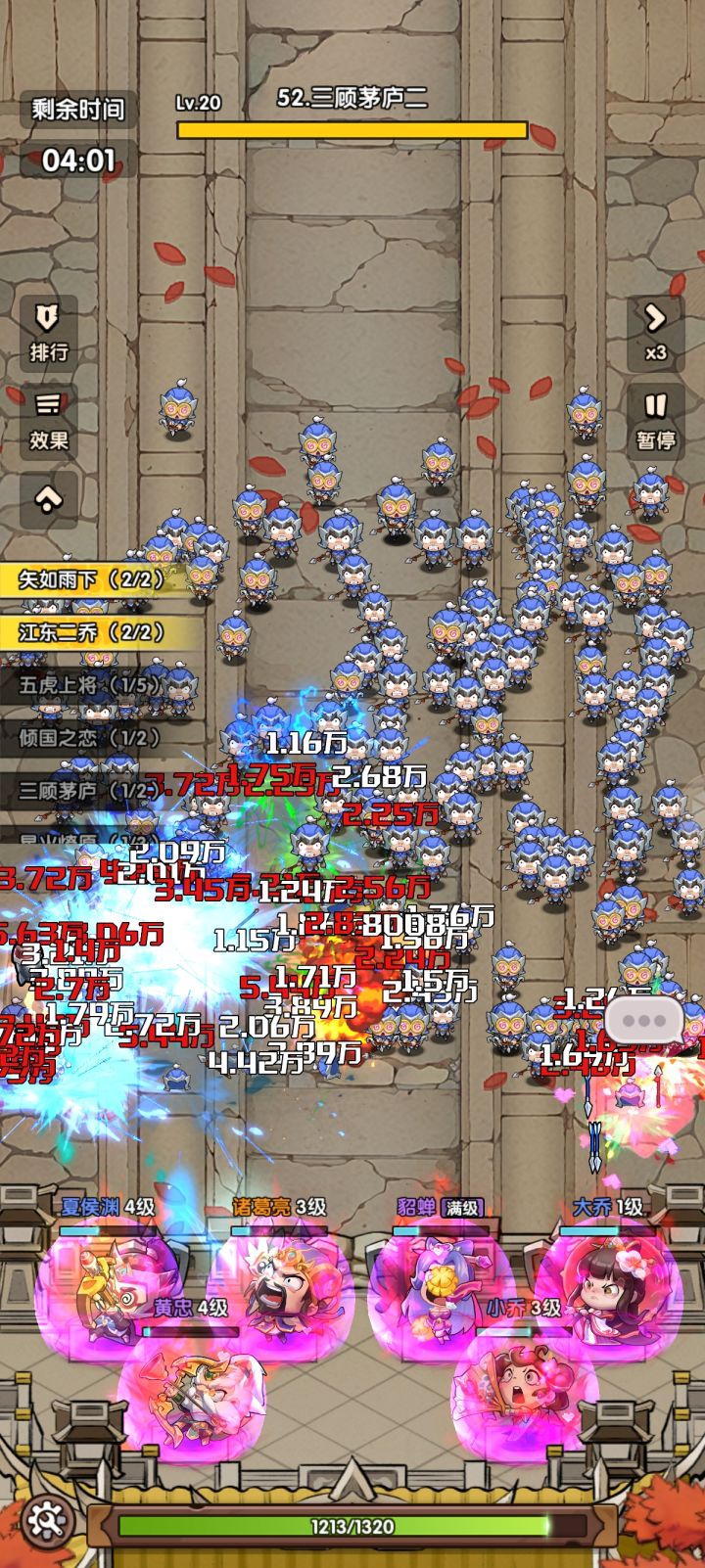 其中黄忠夏侯四级即可,小乔三级效益最高,鲁肃必须五级否则不如不上,貂蝉1,3,5级都可以,具体阵容怎么配置要看自己需求摸索,这些阵容可以过