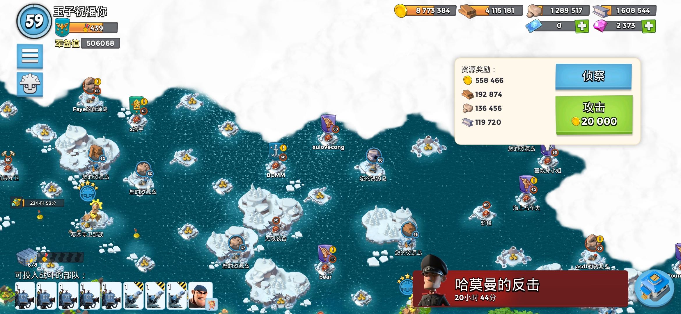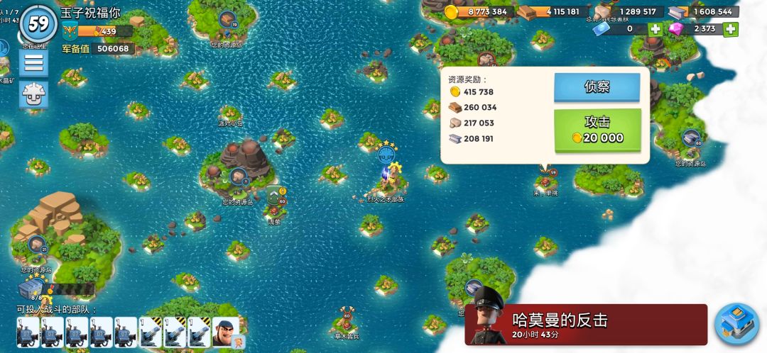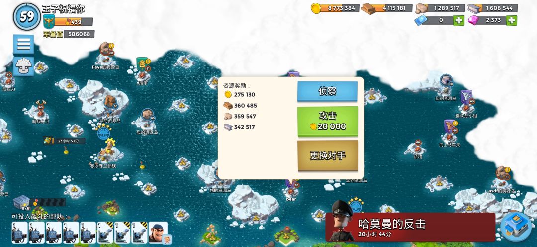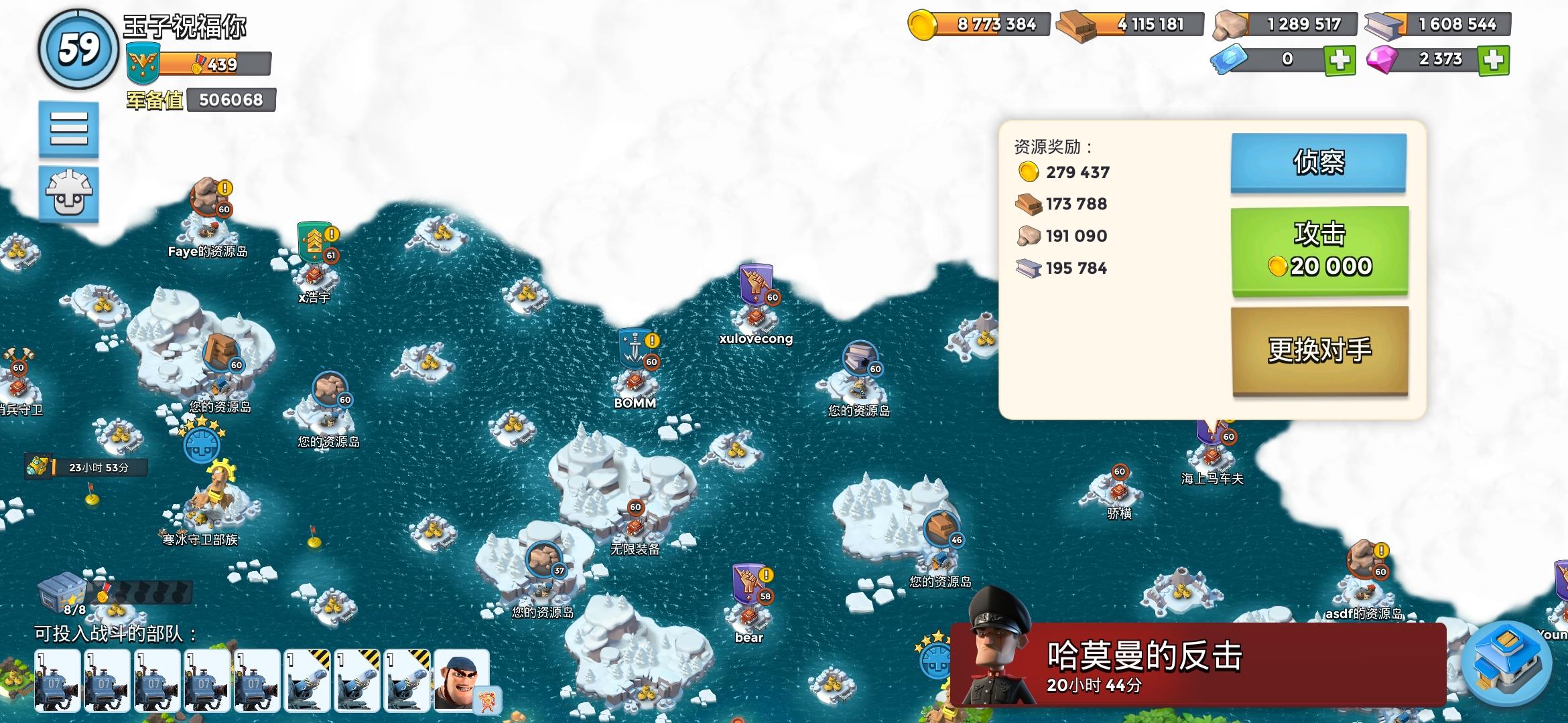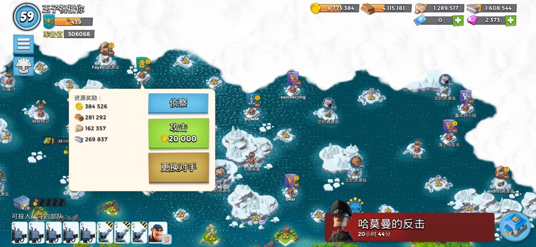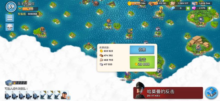 根据我的观察发现,海岛奇兵打玩家资源总量的多少跟他仓库的总量有关,你以为这是句废话?假设这名玩家A刚刷了大量资源然后升级用完了,但是这时候玩家B刷新出来玩家A,而玩家B刷新出来的玩家A岛上是存在大量资源的,意思是他岛上的资源取决于你刷新的时候。