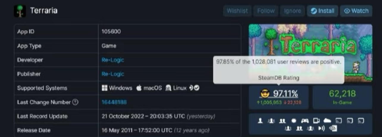 在Steam平台,游戏的好评率常年保持在97%以上。