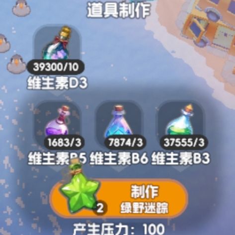 17.绿野迷踪=3维生素b3+3维生素b6+3维生素b5+10维生素D3+100压力