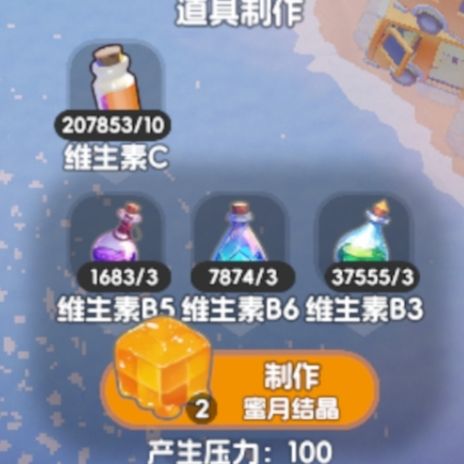 16.蜜月结晶=3维生素b3+3维生素b6+3维生素b5+10维生素c+100压力