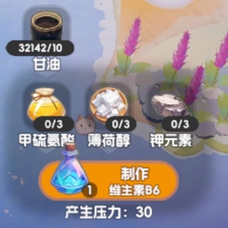 11.维生素B6=3甲硫氨酸+3薄荷醇+3钾元素+10甘油(甘油可以用白嫖的留露拉和奈莫)
