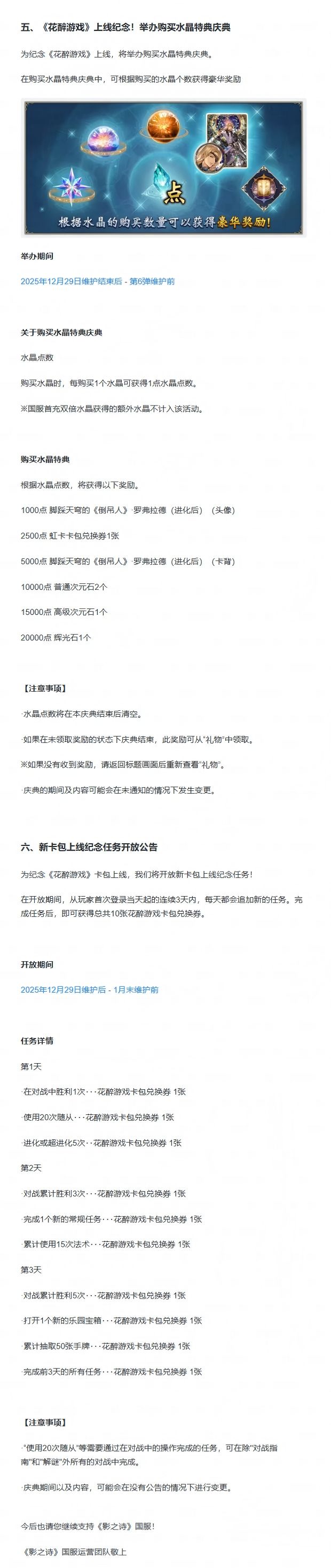 《影之诗》第五弹卡包“花醉游戏”更新公告