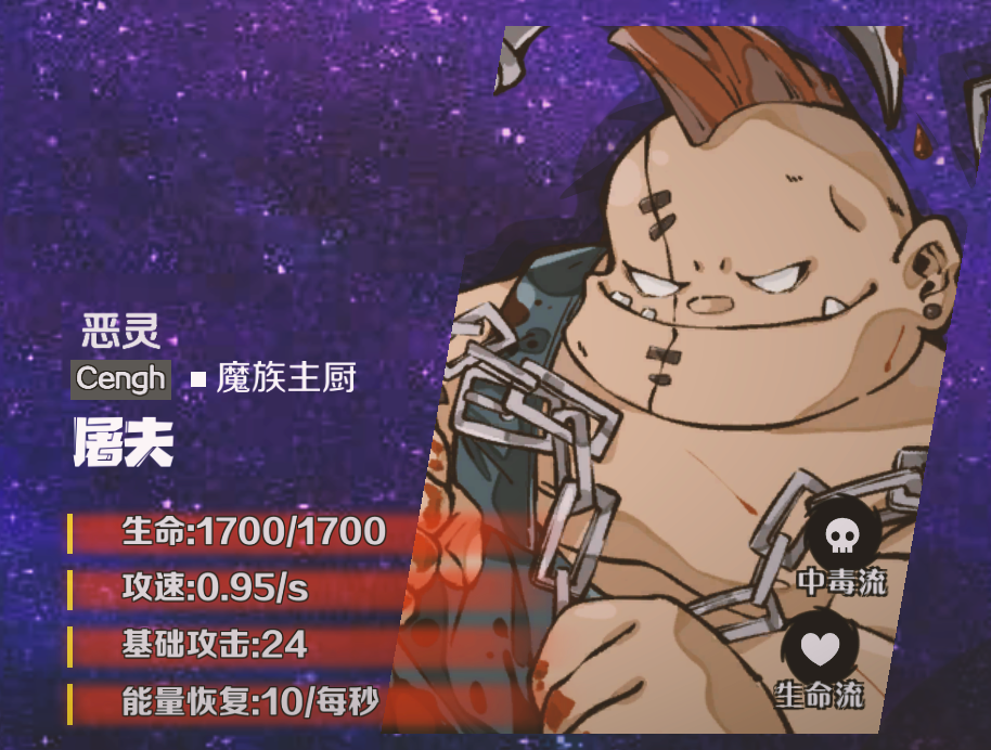 我特别喜爱这个角色!他长得圆圆胖胖,又酷又特别,我每次选人都第一个点他!最厉害的是他的毒技能,敌人一被攻击,血条唰唰往下掉,玩起来真的爽歪歪!![[表情_菜]](https://img.tapimg.com/market/images/38c9248c34f7b24ecb762e3f631653ca.png)